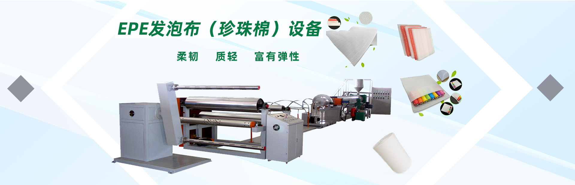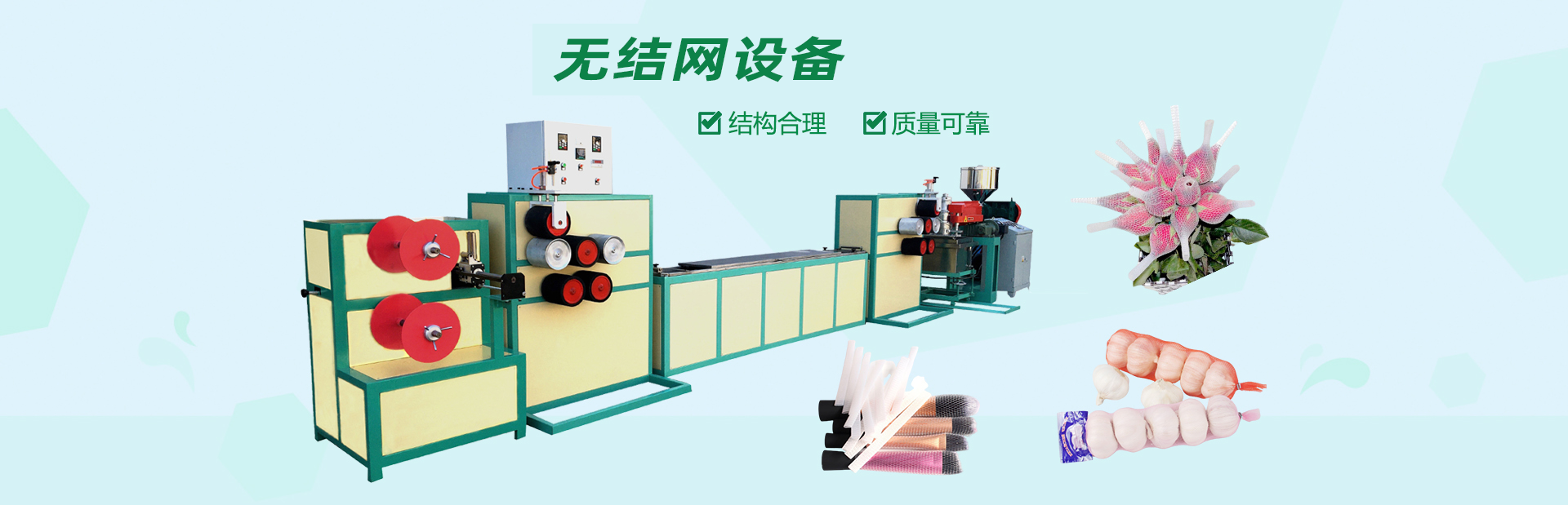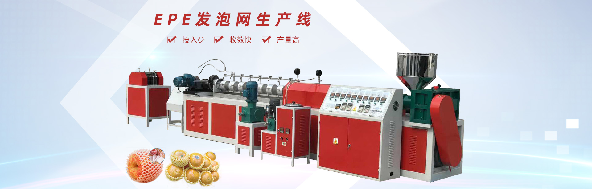 龍口市山河塑業(yè)有限公司生產(chǎn)的發(fā)泡網(wǎng)套機,用于水果、蔬菜、花蕾及瓶類的外包裝。我公司具有多年的實踐經(jīng)驗和可靠的技術力量,根據(jù)市場需求開發(fā)各種規(guī)格的網(wǎng)套。每24小時生產(chǎn)蘋果網(wǎng)套80萬-120萬個,設備驅動電機采用變頻控制,調速精度高、范圍廣、能耗低、運行可靠每小時僅用電10度左右,產(chǎn)量提高。此外,該生產(chǎn)線配置不同的模頭和輔機可生產(chǎn)發(fā)泡片、發(fā)泡管、發(fā)泡棒、發(fā)泡條及異型材等產(chǎn)品。